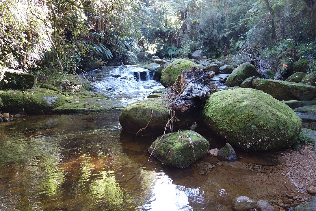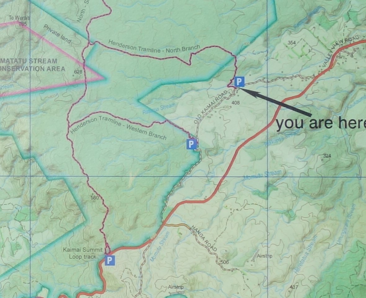 At the end of the track. I started from the parking area at the end of the Western Branch, walked up the Western Branch track, up the North/South track to the North Branch, and then down the North Branch. Finally a walk back to the carpark along Old Kaimai Rd.