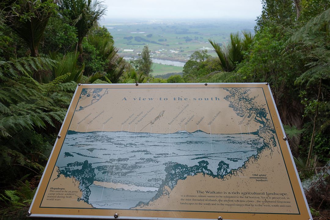There is an impressive view from the Upper Lookout towards Huntly and the north, with the Waikato River clearly visible. Lake Rotongaro and Lake Waahi are to the left of the river.