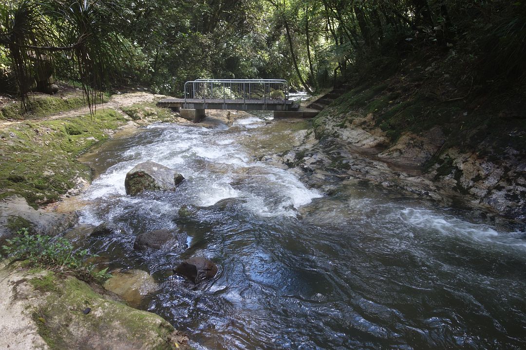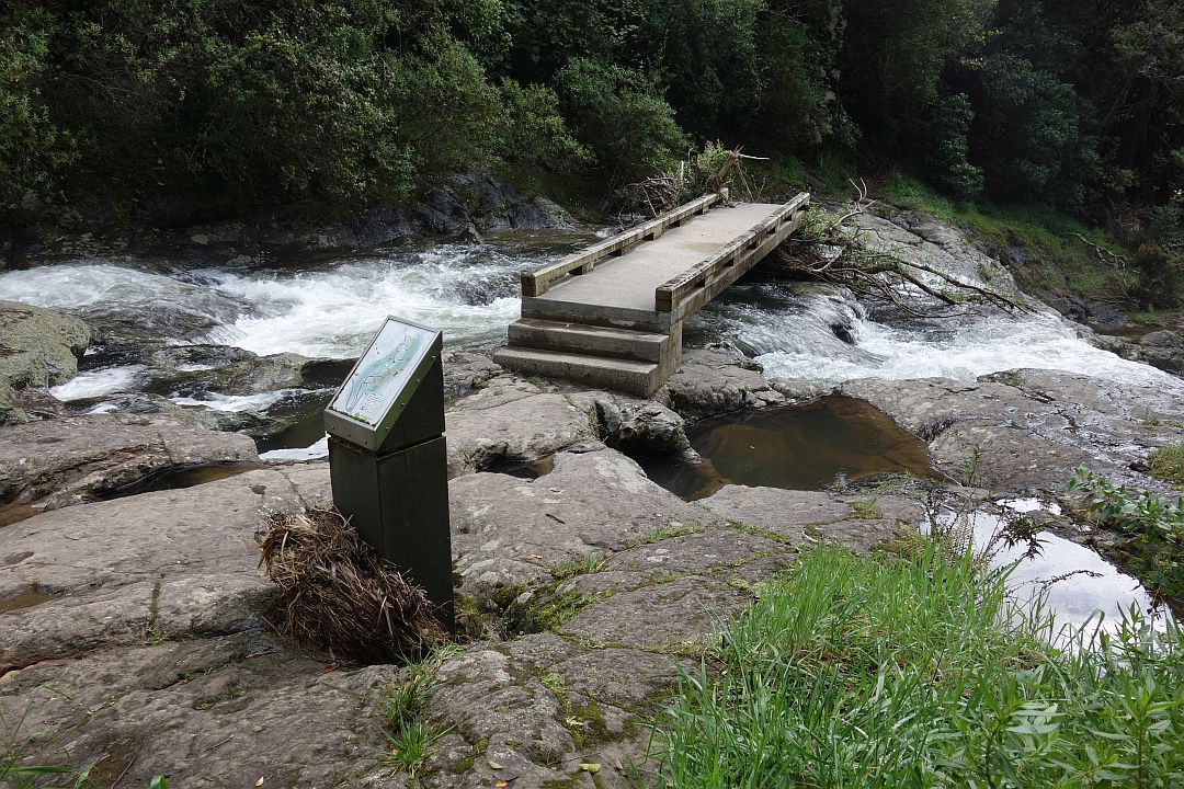 The amount of water in the Waitao Stream varies considerably depending on rainfall. Most of the photos here were taken after two days with about 85mm of rain. During heavy rain the bridges may be under water, as had happened recently.