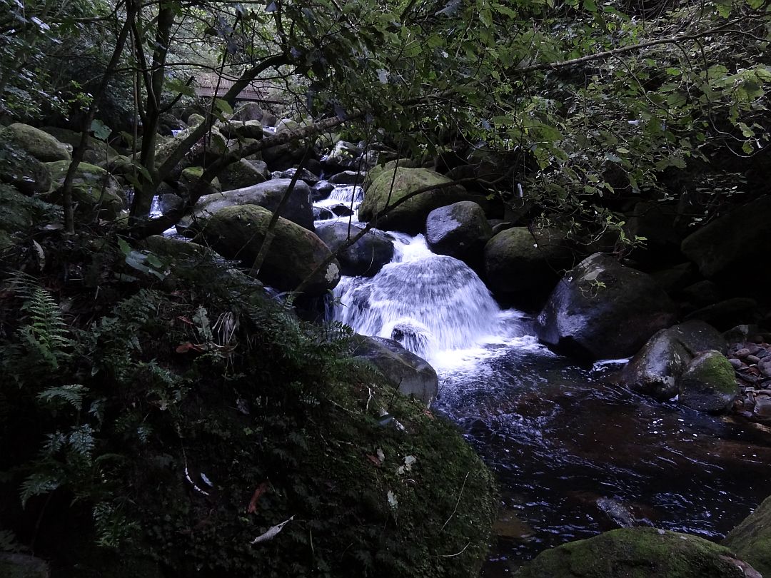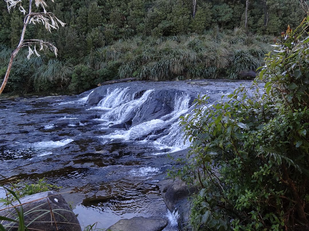 The stream is much calmer at the top of the falls, with several small falls visible from the track.