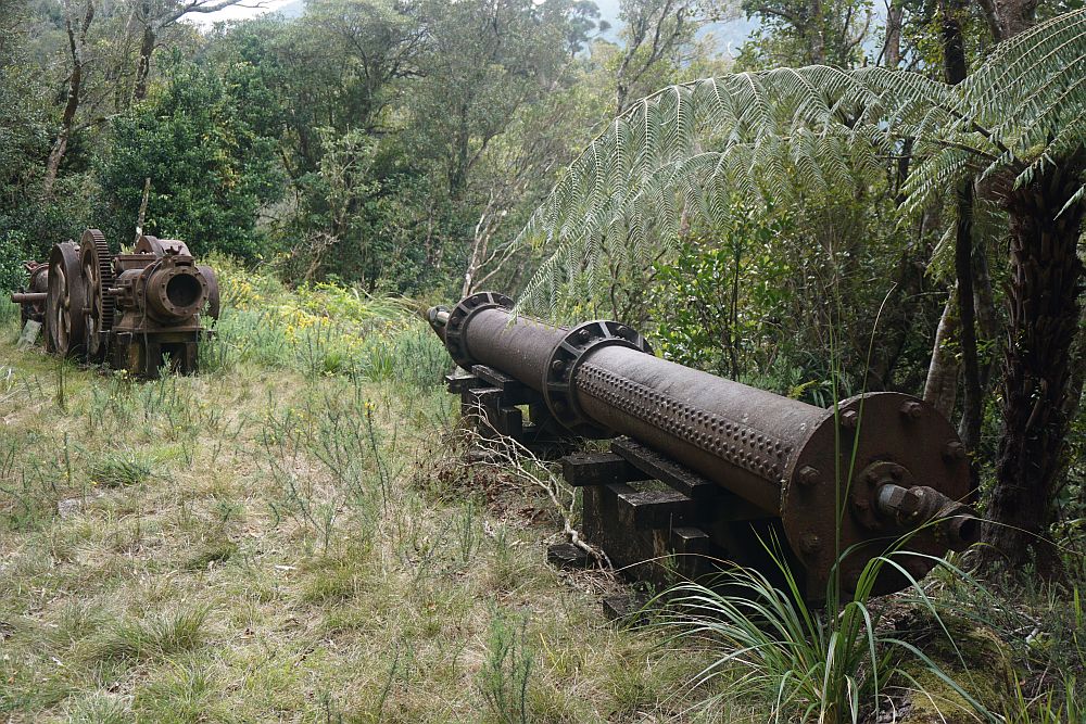 A compressor rescued from a nearby mine, and placed alongside the tramway between Butlers and May Queen Inclines. The compressor provided compressed air to drive the hammer drills used in mining the hard gold-bearing quartz and rock.