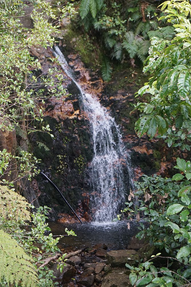 A small waterfall marking the end of the tramway. The track continues on from here, with access to the summit of Mt Te Aroha, the North/South track along the Kaimai Range, and a track to the mining areas of Karangahake Gorge.