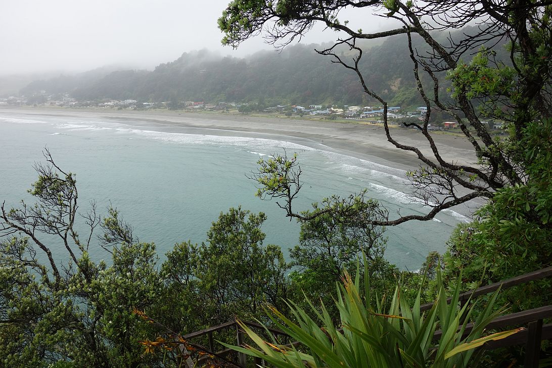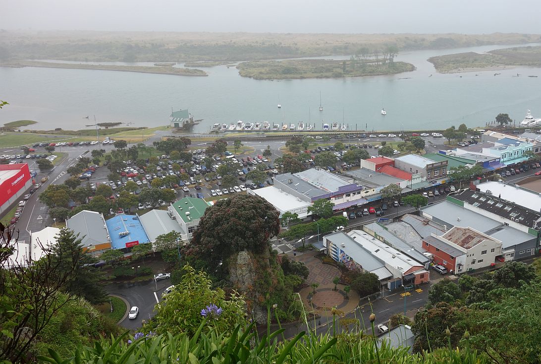 At the corner of Hillcrest Rd and Seaview Rd there is a pa site on Puketapu, with a lookout, Here looking to the north over the town, towards the river mouth.
