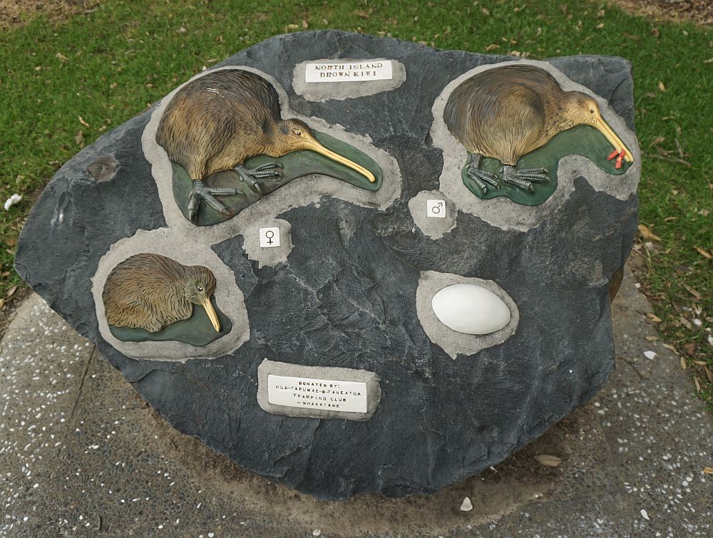 A sculpture near the entrance shows the relative sizes of the kiwi and their eggs.