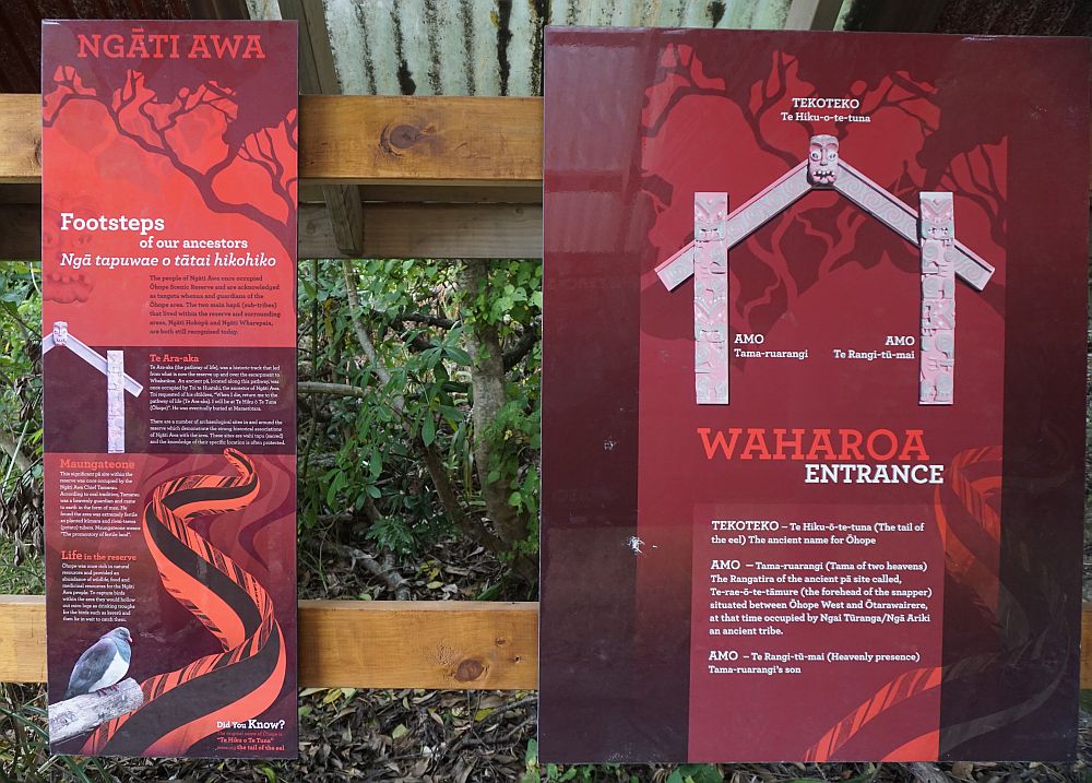 The start of the track passes through a waharoa, or carved portal, where there are information panels with details about the tracks and their history and significance to Maori.