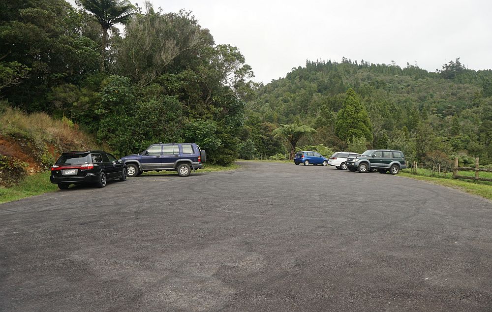There is a parking area and information panels at the end of Hot Springs Rd, but no toilet facilities. The Tuahu Track continues across the Kaimai Range, ending on Wairakau Rd on the western side of the range. On the eastern side of the range the track is wide and well formed, and a good walking track. After an easy walk of about 25 minutes or 1,5km from the start of the Tuahu Track there is a short loop track, well signposted and with a few steps, leading to the two large kauri trees and the start of the Sentinel Rock Track.