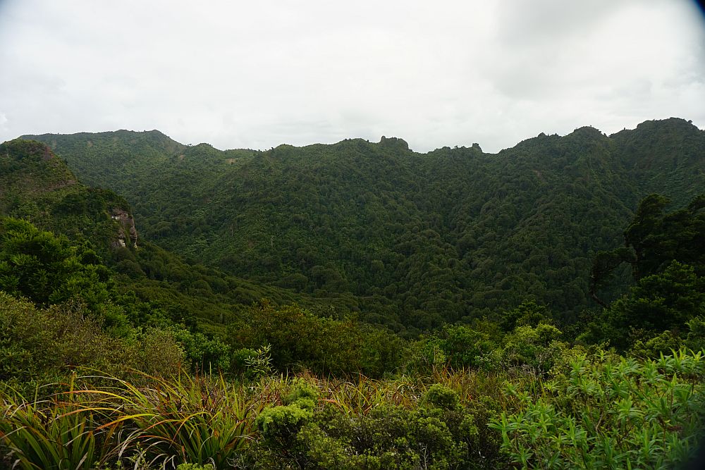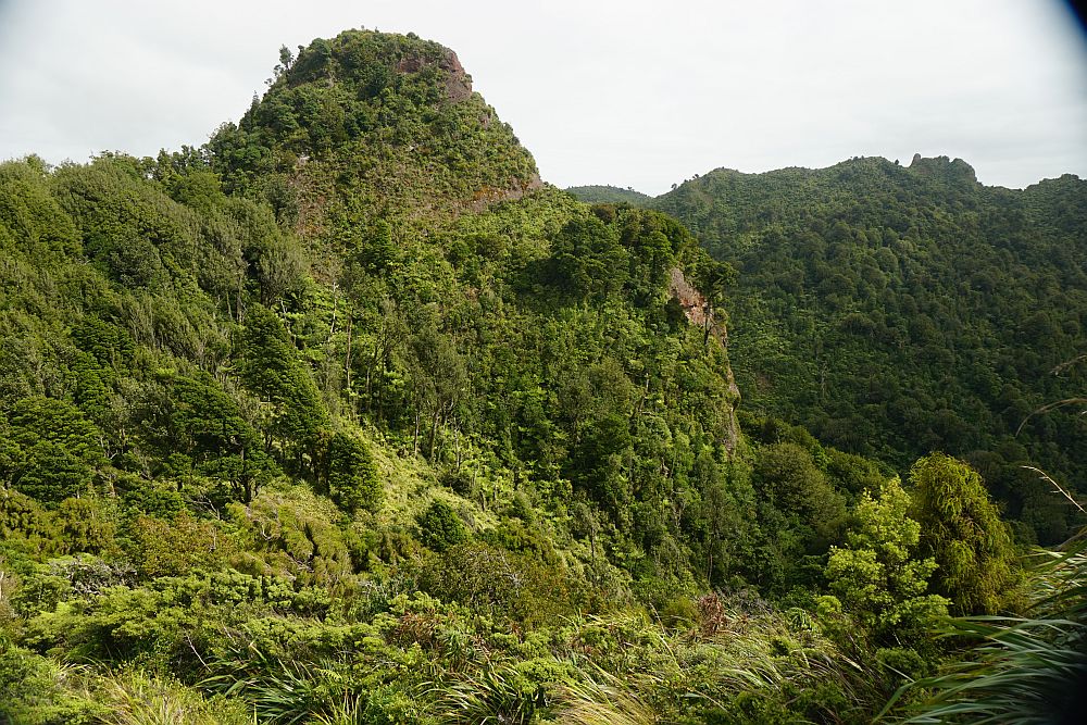 There are interesting formations along the Kaimai Range ridgeline, seen from the Sentinel Rock Lookout.