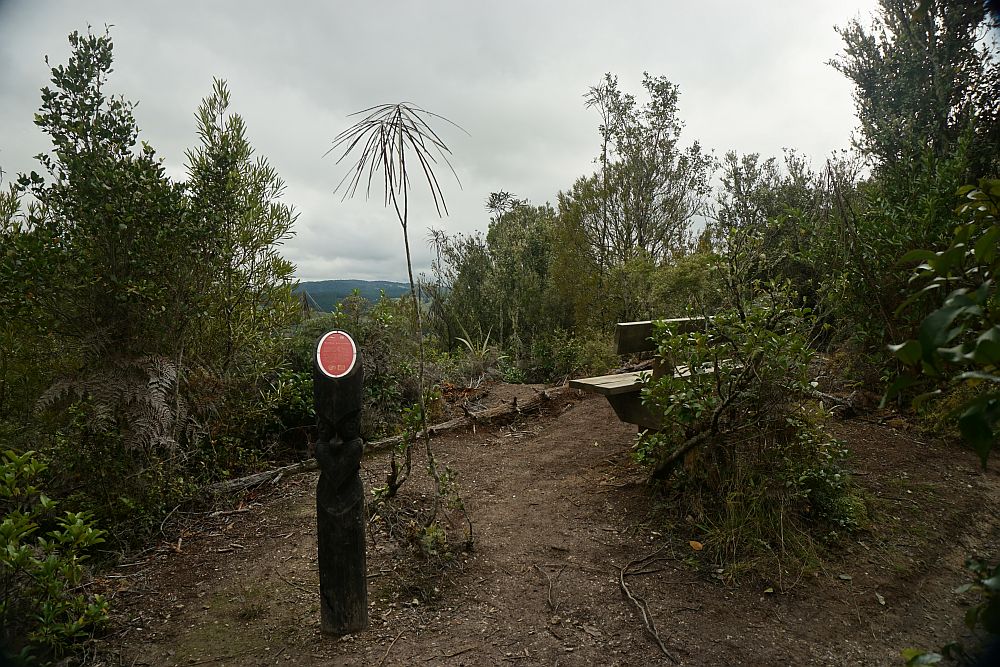 A bench seat for enjoying the views is provided about halfway up the mountain track.