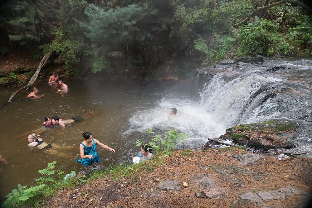 Kerosene Creek is a very popular spot. The stream is at a pleasant temperature for bathing, even on colder days. There is no charge for admission, but the access road is gravel and full of potholes, so it’s a slow 2 km drive from SH5 to the carpark. The swimming holes are only about 100m from the carpark along a well-formed track.