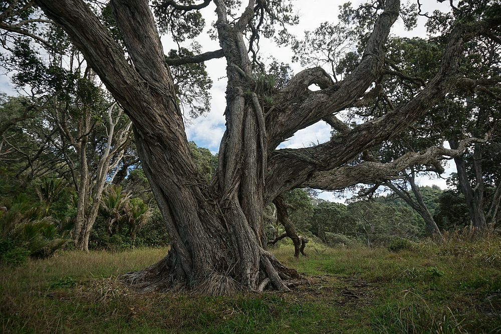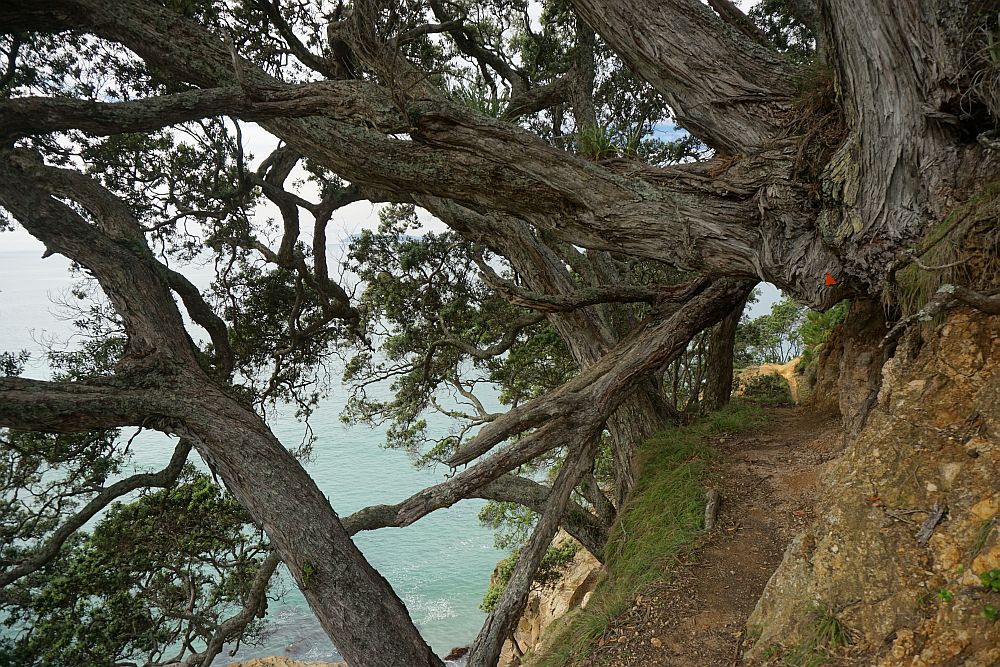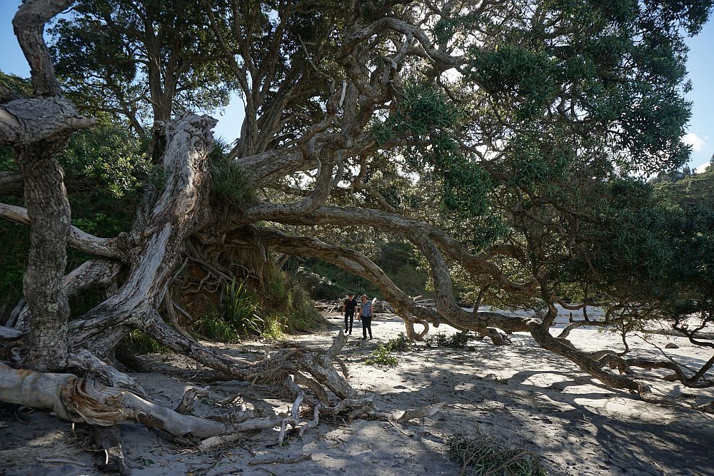 A number of older pohutukawa trees are located just above high water level, along the length of the track which runs parallel to the beach. Some of them have interesting shapes.