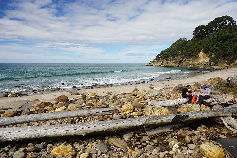 A perfect spot in Homunga Bay for a picnic lunch, sitting on a log, in the middle of a stream, listening to the ocean waves lapping the shore just a few metres away.