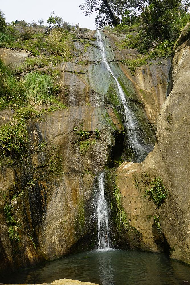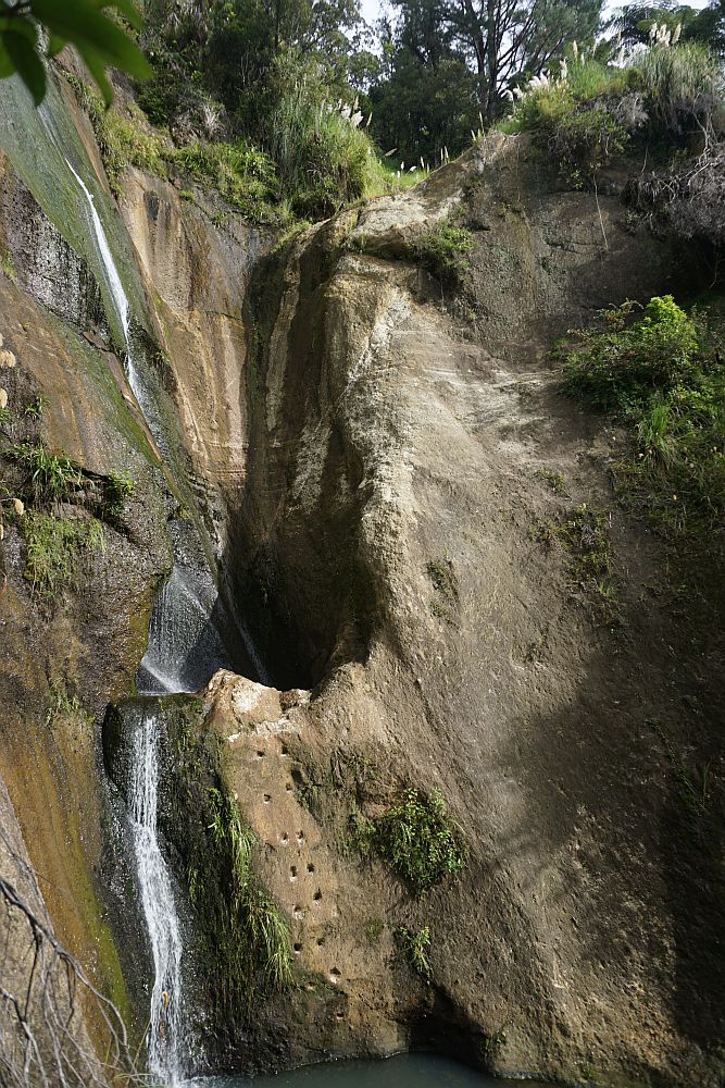 There is a small pool in the cliff where the first fall ends. It is only accessible by the steps cut into the rock. The climb to the pool does not exactly look safe.