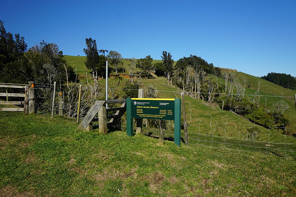 The first part of the track crosses over private farmland before reaching the boundary of the scenic reserve. Cattle or sheep may be grazing on this part of the walk. The remainder of the walk is through regenerating native bush, mostly following a ridgeline directly to the Otawa Trig. Most of the track has an easy contour, but there are a few steeper ascents and descents, especially on each side of the Otawa Trig.