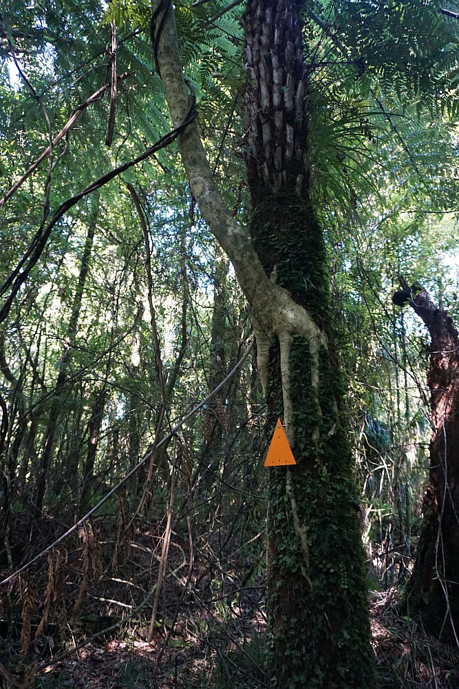 About 400m past the trig, down a steep incline, there is a track junction, with the left branch continuing to Manoeka Rd near Te Puke, and the right branch towards Demeter Rd, and, on a track not regularly maintained, to Whataroa Falls and Otanewainuku. The time from here to the Te Puke Quarry Rd car park is shorter than it is from the Otawa Trig, despite a steep climb back up to the trig.