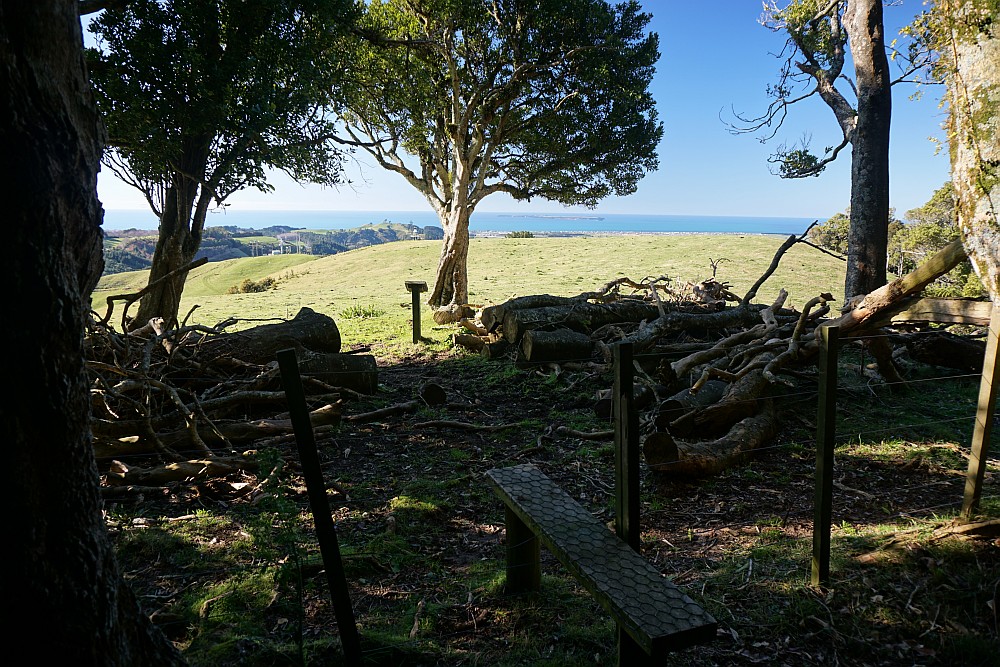 Due to the tree cover there are very few places where the surrounding countryside can be viewed from the track. This is one of them, a few hundred meteres from the Otawa Trig, looking out over a very steep hillside across Te Puke and towards the eastern Bay of Plenty.