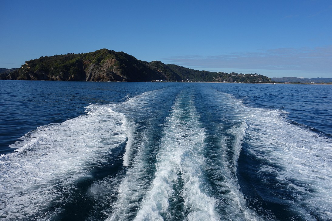 Leaving Whakatane behind, on a perfect early spring day with sunshine and calm seas.