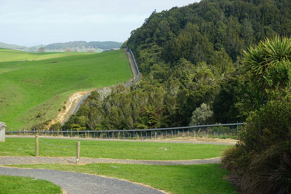The predator proof fence can be seen along the edge of the forest near the visitor centre.