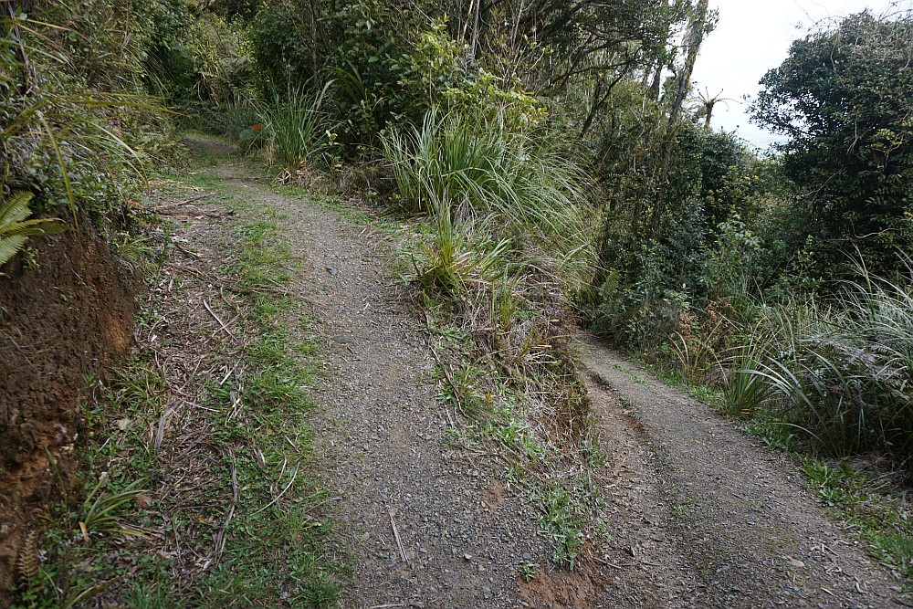 The second part of the original forest track is somewhat longer and steeper that the first part, and crosses over the rocky outcrop near the saddle before reaching Pukeatua peak. This is the southern end of the second part.