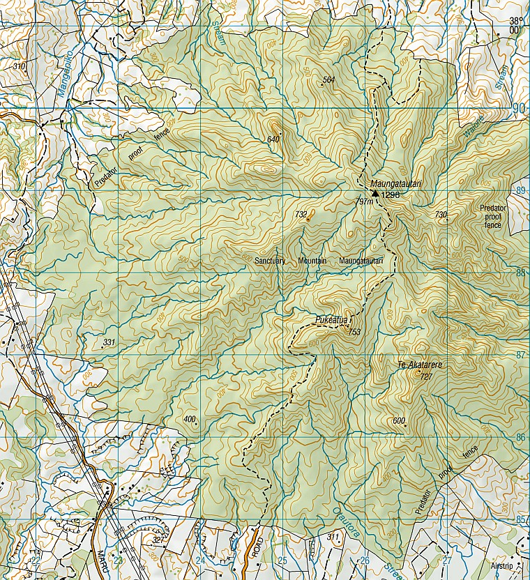 Pukeatua peak, a 753 m high mountain peak, is located in the Maungatautari Ecological Island, within the Sanctuary Mountain Maungatautari enclosure. Pukeatua is the second-highest peak within the sanctuary, and the only one with a view. Maungatautari is the highest at 797m, but due to vegetation there are no views from here. The mountain sanctuary is surrounded by a 47 km long predator proof perimeter fence, protecting the many species of native birds and other animals from predators such as stoats, rats, cats, dogs, possums, rabbits and other mammals.