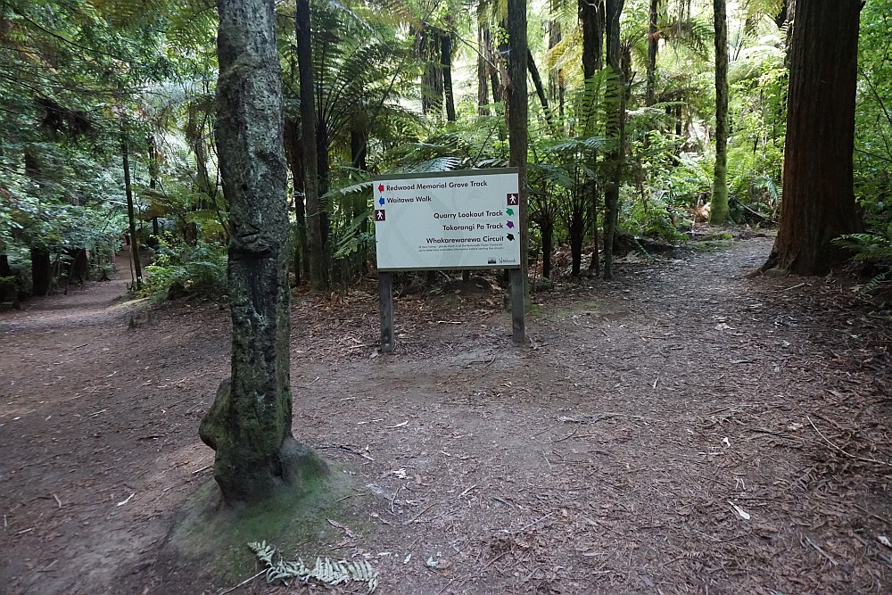 It passes through part of the redwood forest, before the Pohaturoa Track branches off from the other tracks.