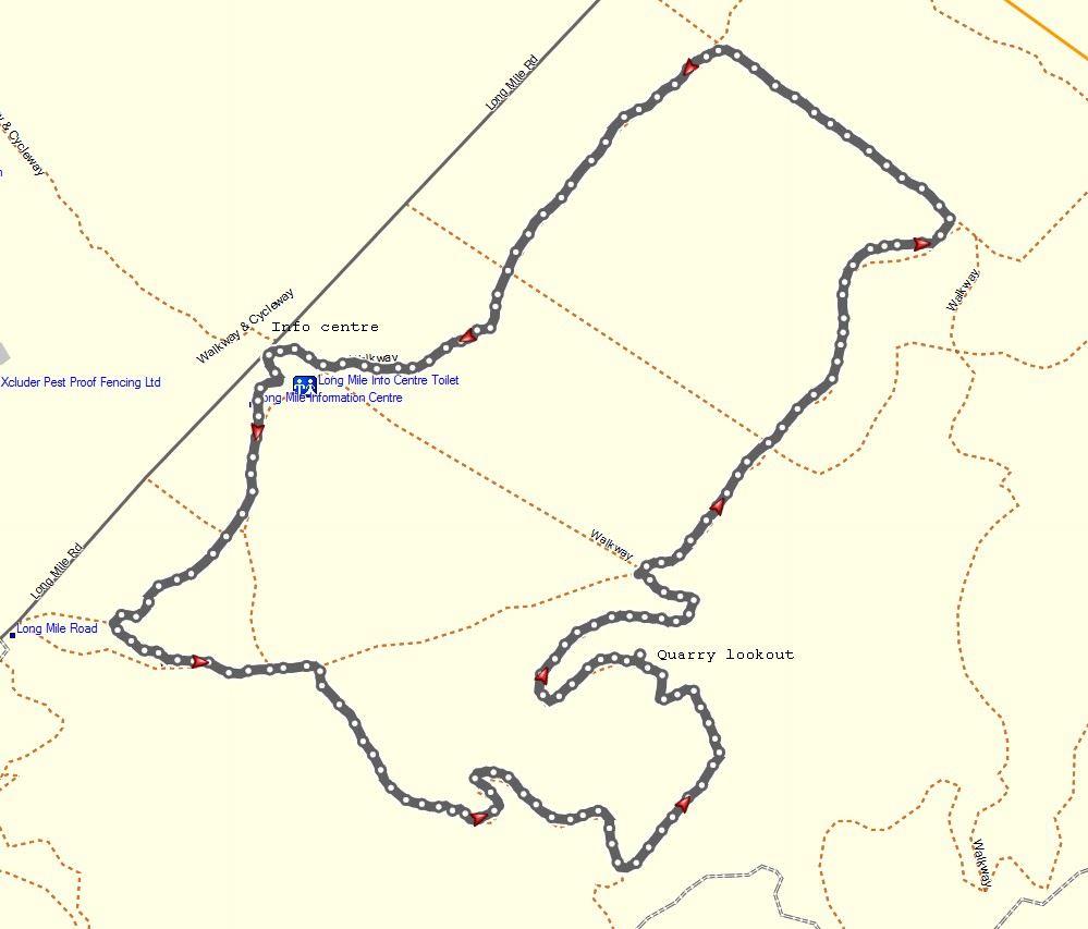The Quarry Track runs parallel to Tarawera Rd for some distance, heading down towards Long Mile Rd.