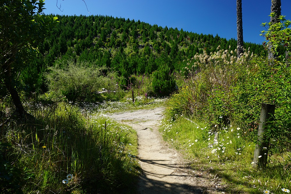 Tokorangi Pa Track is not as well marked as the other two tracks, and occasionally it’s not obvious which track to follow. Here a mountain bike track crosses over the walking track.