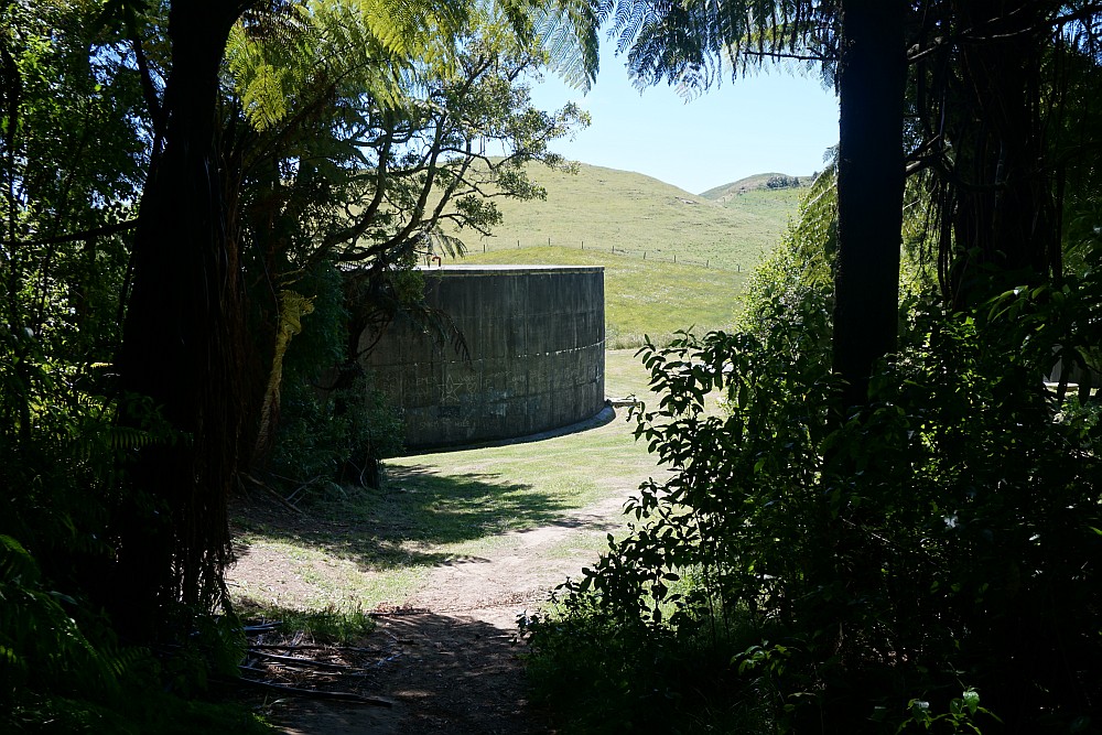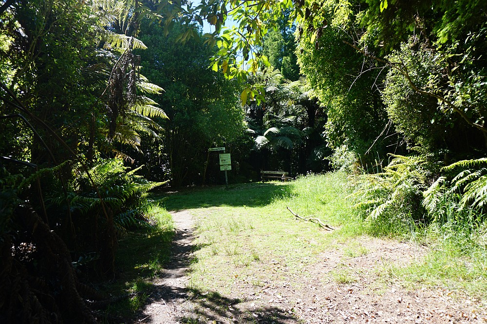 The track continues on to the town water supply tank next to Tarawera Rd. From here it is possible to follow the link track through the redwoods parallel to Tarawera Rd back down towards Long Mile Rd and the information centre. There is a small parking area on Tarawera Rd near the water tank, from where the track can also be accessed.