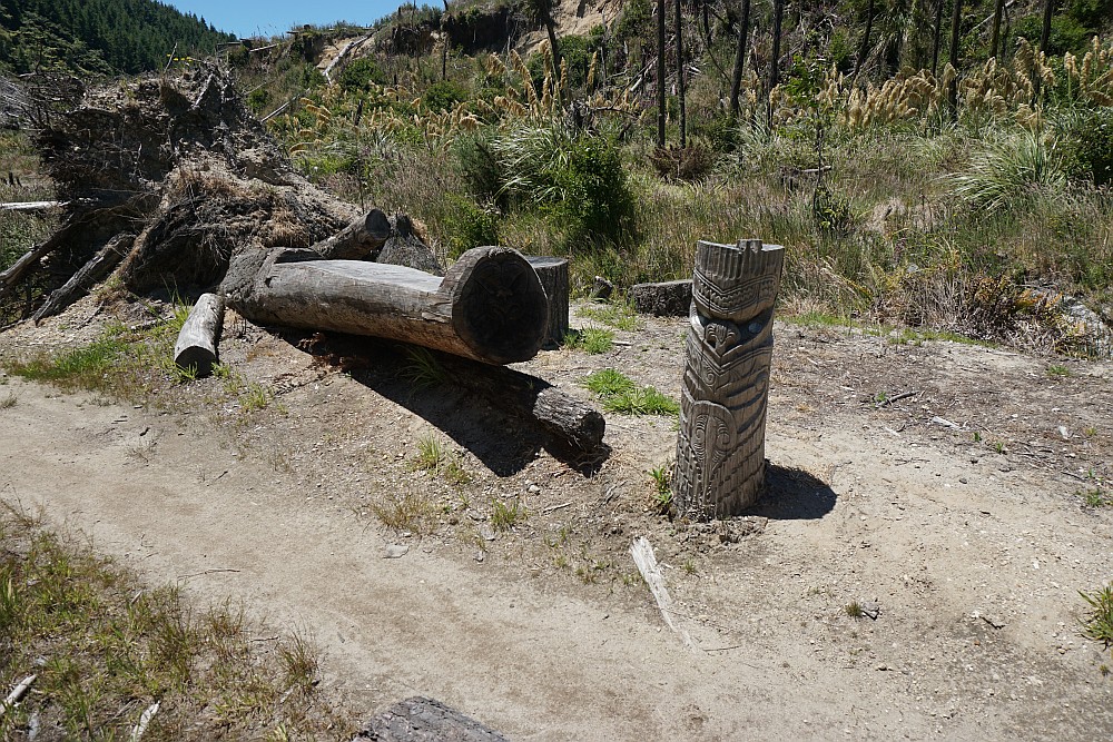 Some forestry workers have presumably had some spare time, carving a log. There is also a carving on the end of the log formed as a bench seat. There are numerous other bench seats made from raw logs along this part of the track.