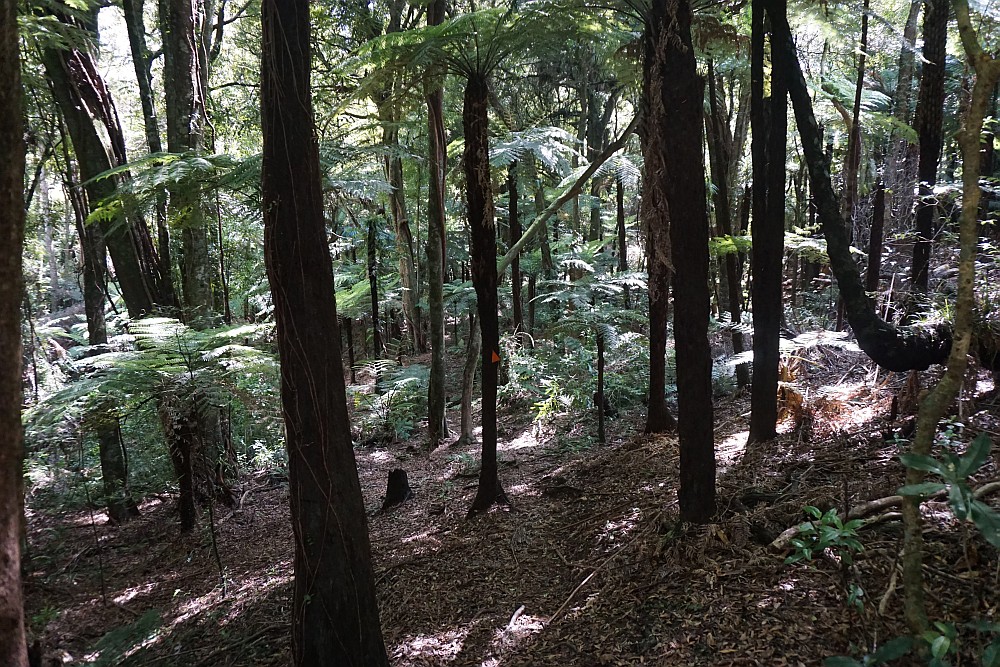 The Dean Track joins up with the Mangakino Pack Track. The loop walk follows the Mangakino Pack track to the junction with the Daly’s Clearing Track. The highest point of the loop walk, about 410m above sea level, is on this track.