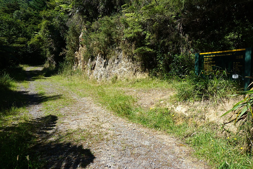 The Mountain Track turns off a short distance along County Rd. County Rd track continues on to Dubbo 96 Track (used in the loop walk from Dickey Flat to Karangahake and back), Mangakino Stream Track, and on to the summit of Mt Karangahake.