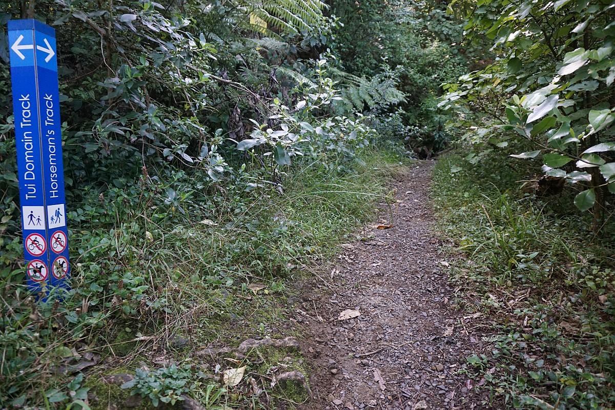 Horseman’s Track branches off the Tui – Domain Track only a few metres from the start of that track by the Domain.