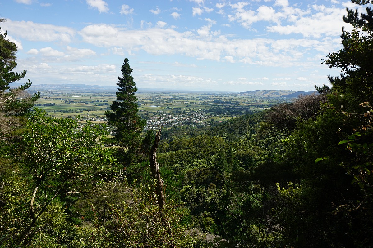 At various locations during the ascent of Horseman’s Track there are views through the vegetation, down the valley to Te Aroha and further afield.