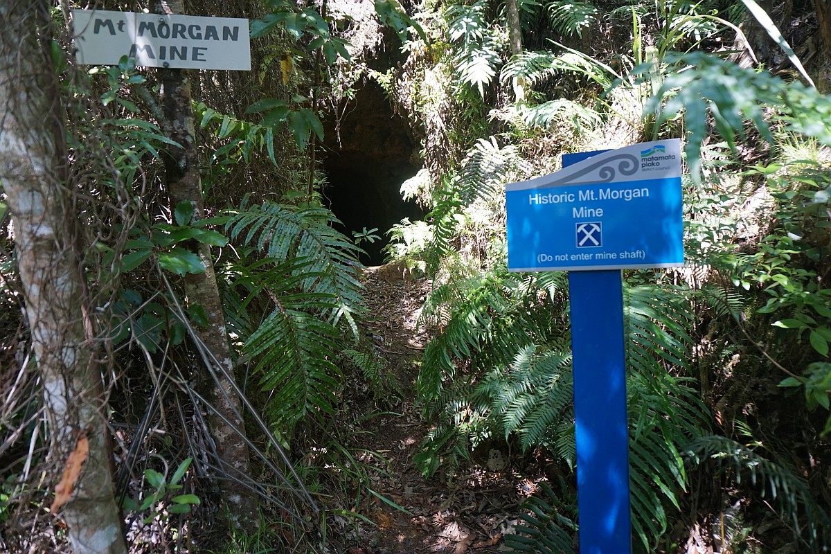 The flanks of Mt Te Aroha have been mined for gold and other minerals. Here the entrance to Mt Morgan Mine, alongside Horseman’s Track. There is no explanation for the origin of the name, when it was mined, and what the extracted from the mine.