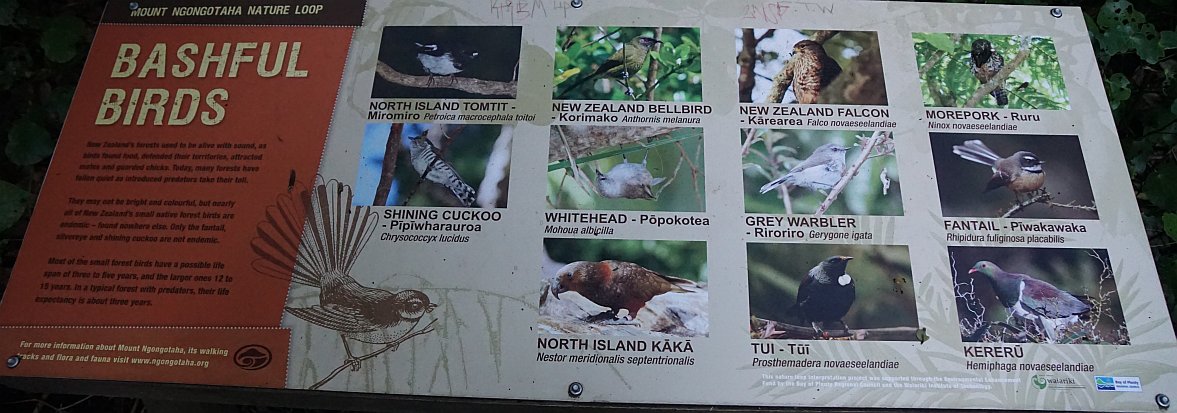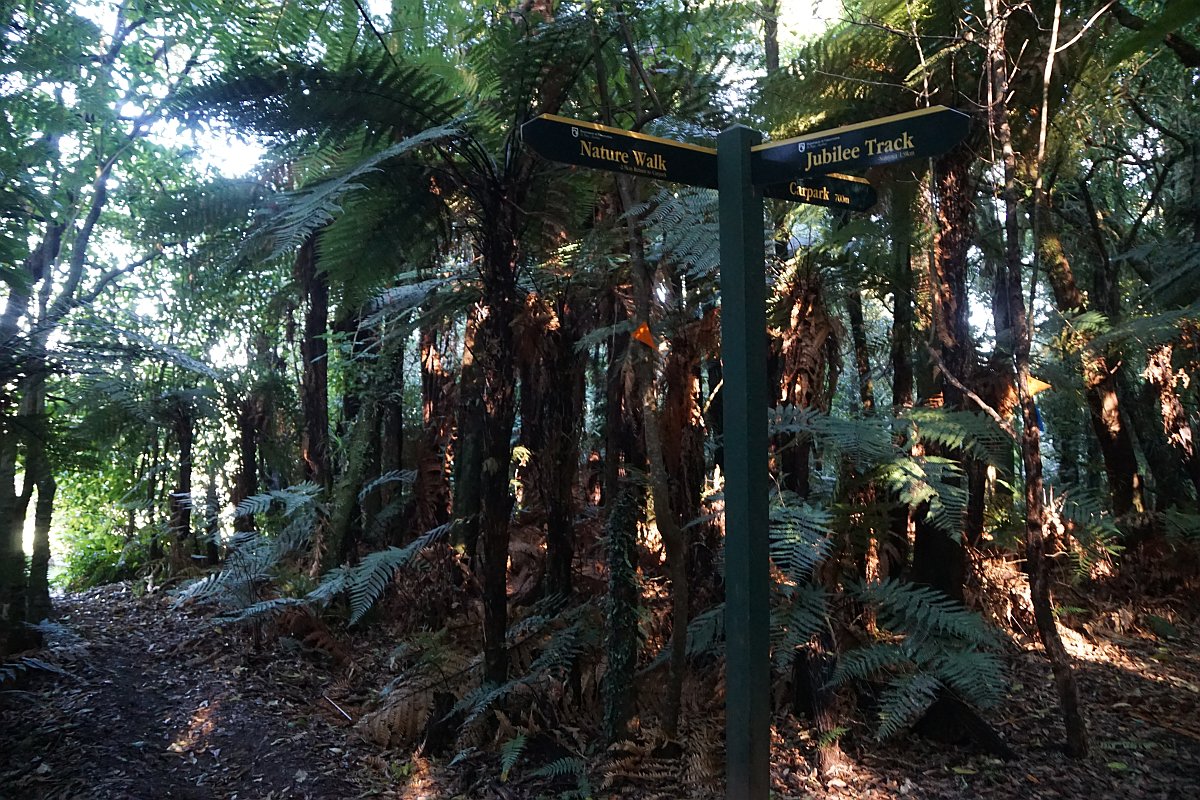 Information is available on the DoC web site for the Jubilee Track and the Nature Loop Track. Mountain bikes are not permitted on the tracks, and this is clearly signposted at both ends of the track. Despite this, there were tyre tracks from mountain bikes on the Jubilee Track. According to the DoC site “the original Jubilee Track was cut on Jubilee Day, January 29 1890, marking 50 years since Captain Hobson arrived at Waitangi” [for the signing of the Treaty of Waitangi on February 6].