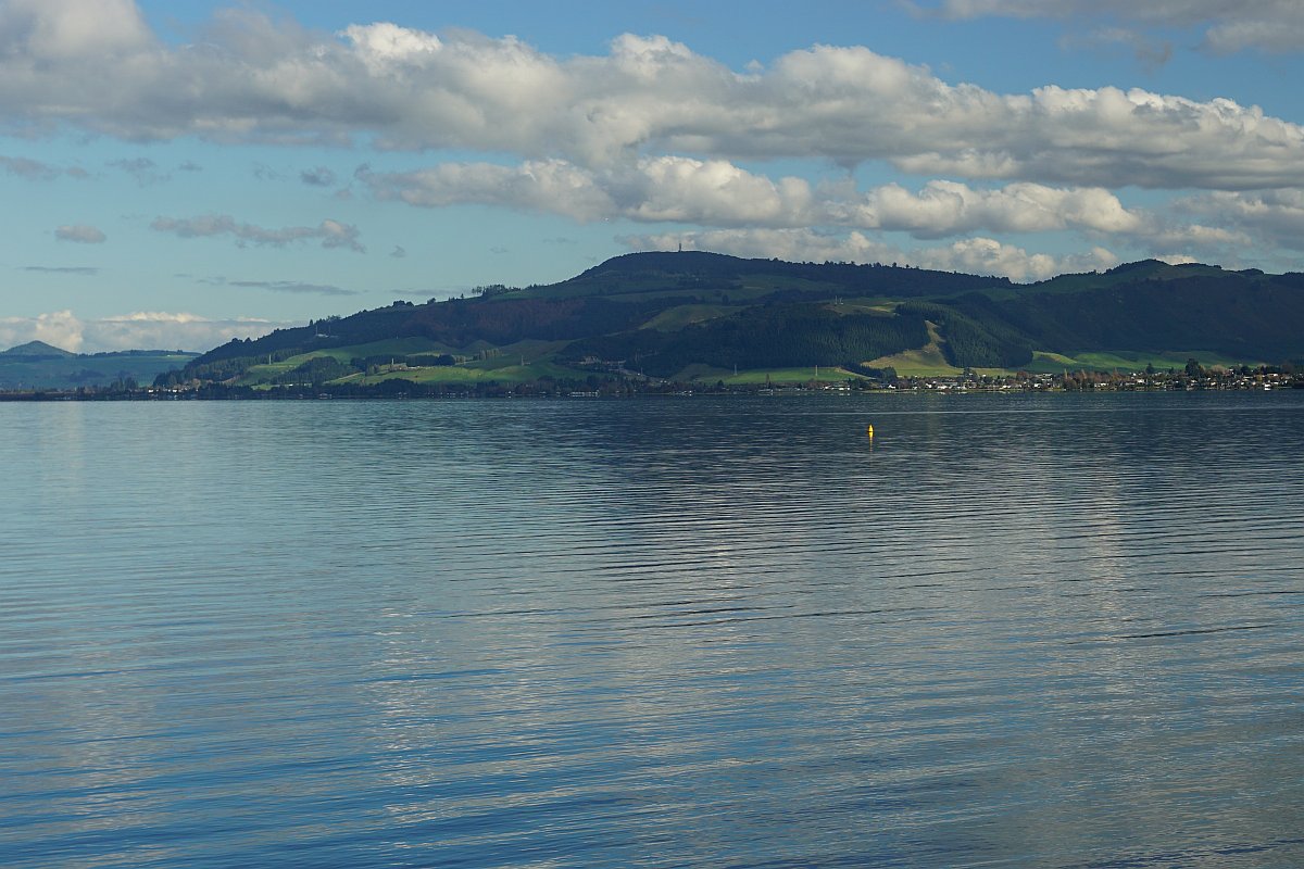 Mt Ngongotaha seen from the other side of Lake Rotorua, at Hamurana.