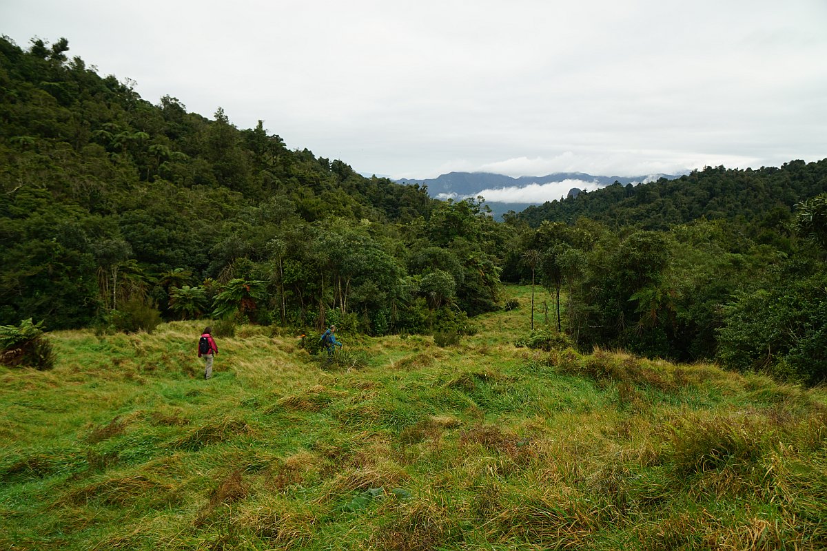 Near the highest point of the track, at about 450 metres above sea level, there are views down the valley towards Maratoto, with the Firth of Thames in the distance. The tracks leading through the grass clearings can be difficult to locate.