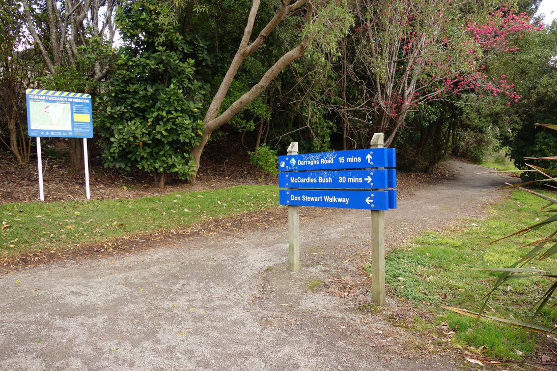 A short branch walkway on the right leads to Darraghs Road. Don Stewart Walkway to Waihi Road continues on the left.