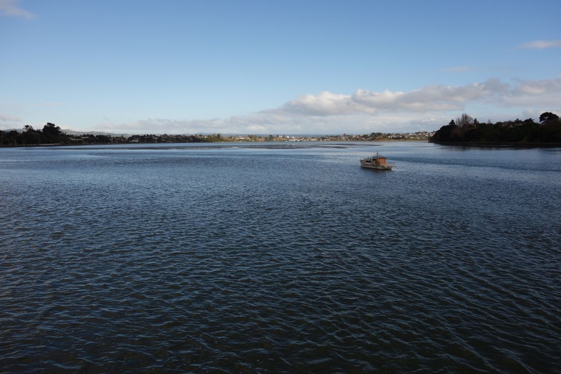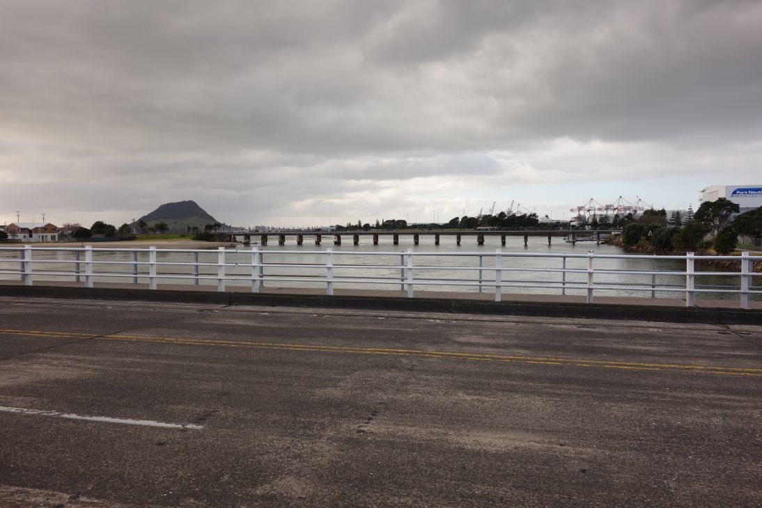 And the view in the other direction, across the railway bridge towards Sulphur Point and Mauao/Mount Maunganui.