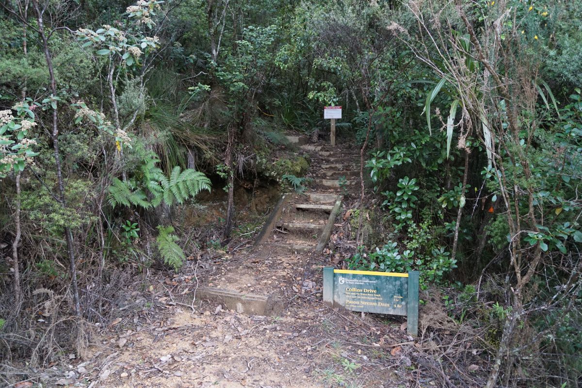The steps are the start of Water Race Link Track, with Puketui Walk ahead to the right.
