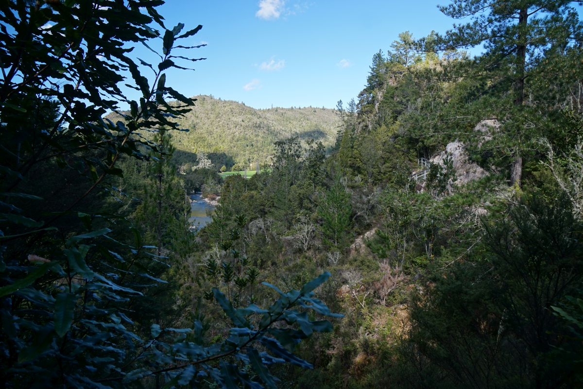 Puketui Valley Road branches off Morrison Road, which connects with SH25 near the turnoff to Pauanui, and near the junction of SH25 and SH25A. The last couple of kilometres of Puketui Valley Road are gravel and very narrow, with the Tairua River on one side and steep cliffs on the other. A couple of tracks are accessible from the bridge carpark a short distance from the end of the road, with most tracks accessible from the carpark at the end of the road, next to the DoC campground.