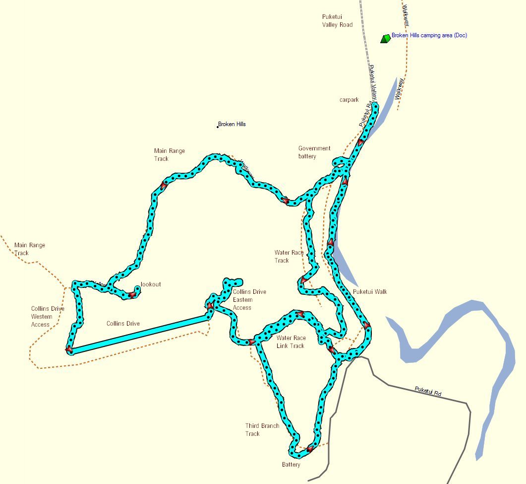 Water Race Link Track up to top of Third Branch Track and back down to Puketui Walk.