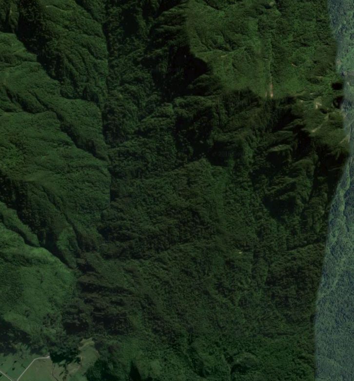 Pahiko is the peak to the right, with a slip on the hillside below it.