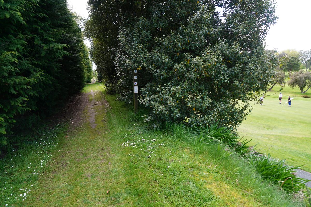 Looking back down the walkway from near Kayelene Place, with the golf course on the right.