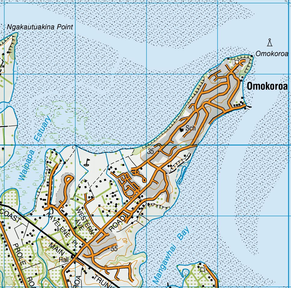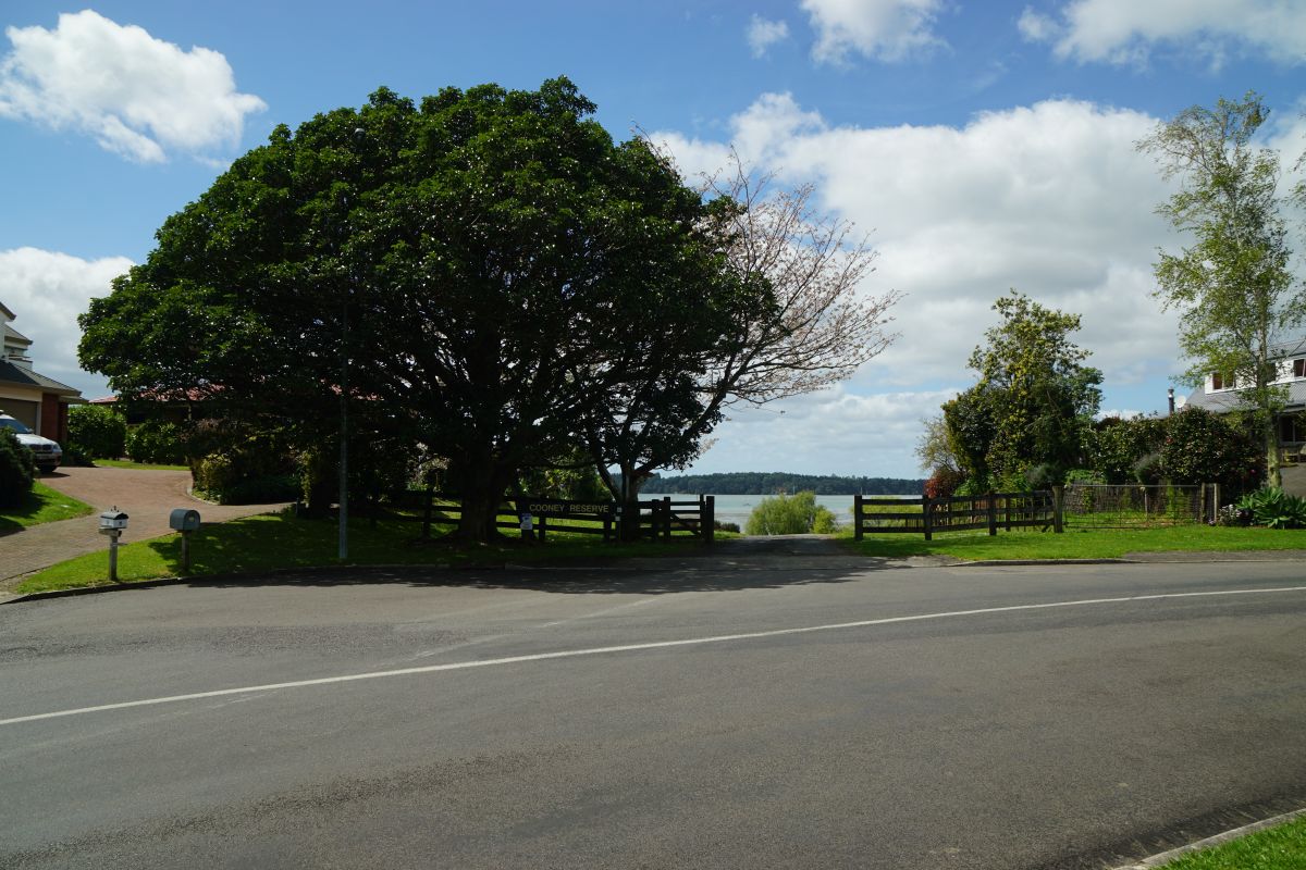 Turn left onto Omokoroa Road, and continue along the road to Margaret Drive. Take either the first entry to Margaret Drive, or the second entry as shown on the GPS tracklog. The walking distance will be about the same. Near the northern end of Margaret Drive there is a road leading down to Cooney Reserve.