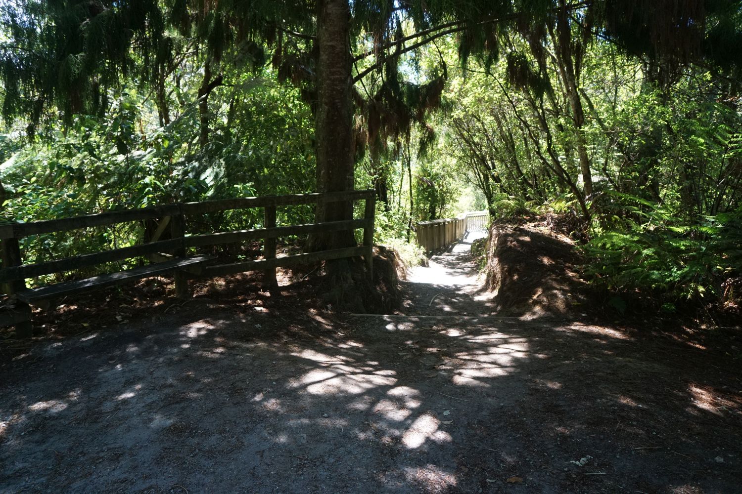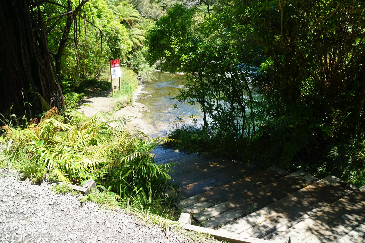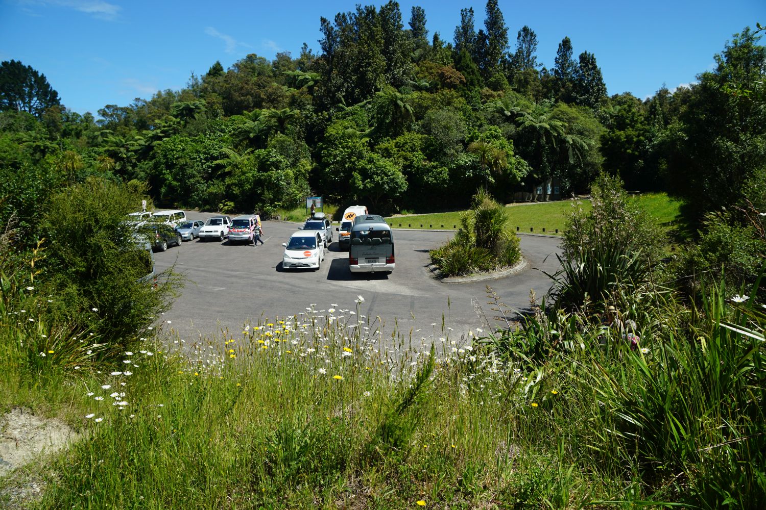 The start of the walking track by the carpark. The steps down to the river start by the trees on the far right. The track was busy, due to numerous tour companies with passengers from cruise liners berthed at Mt Maunganui on the day.