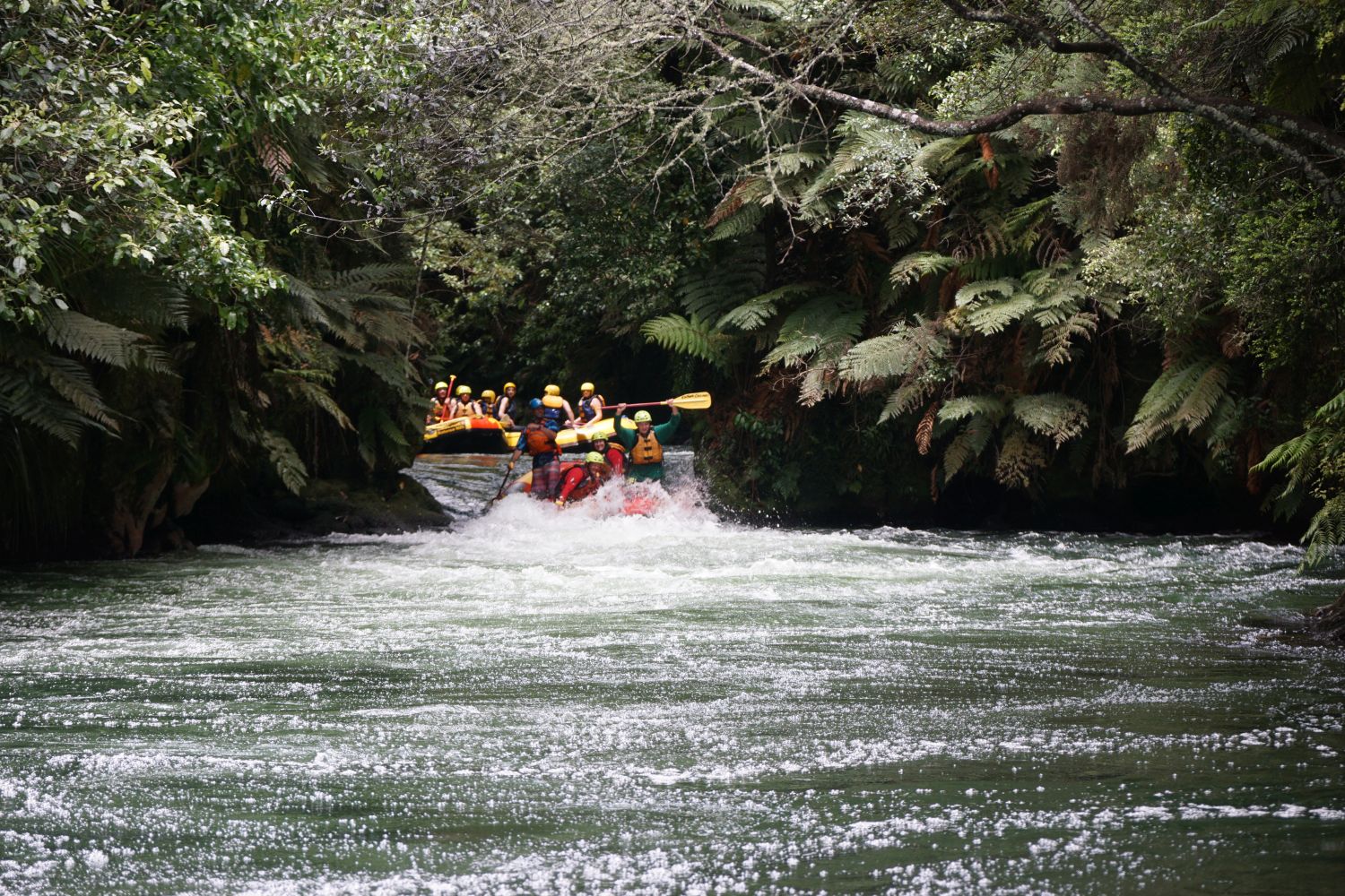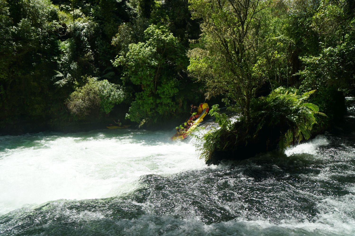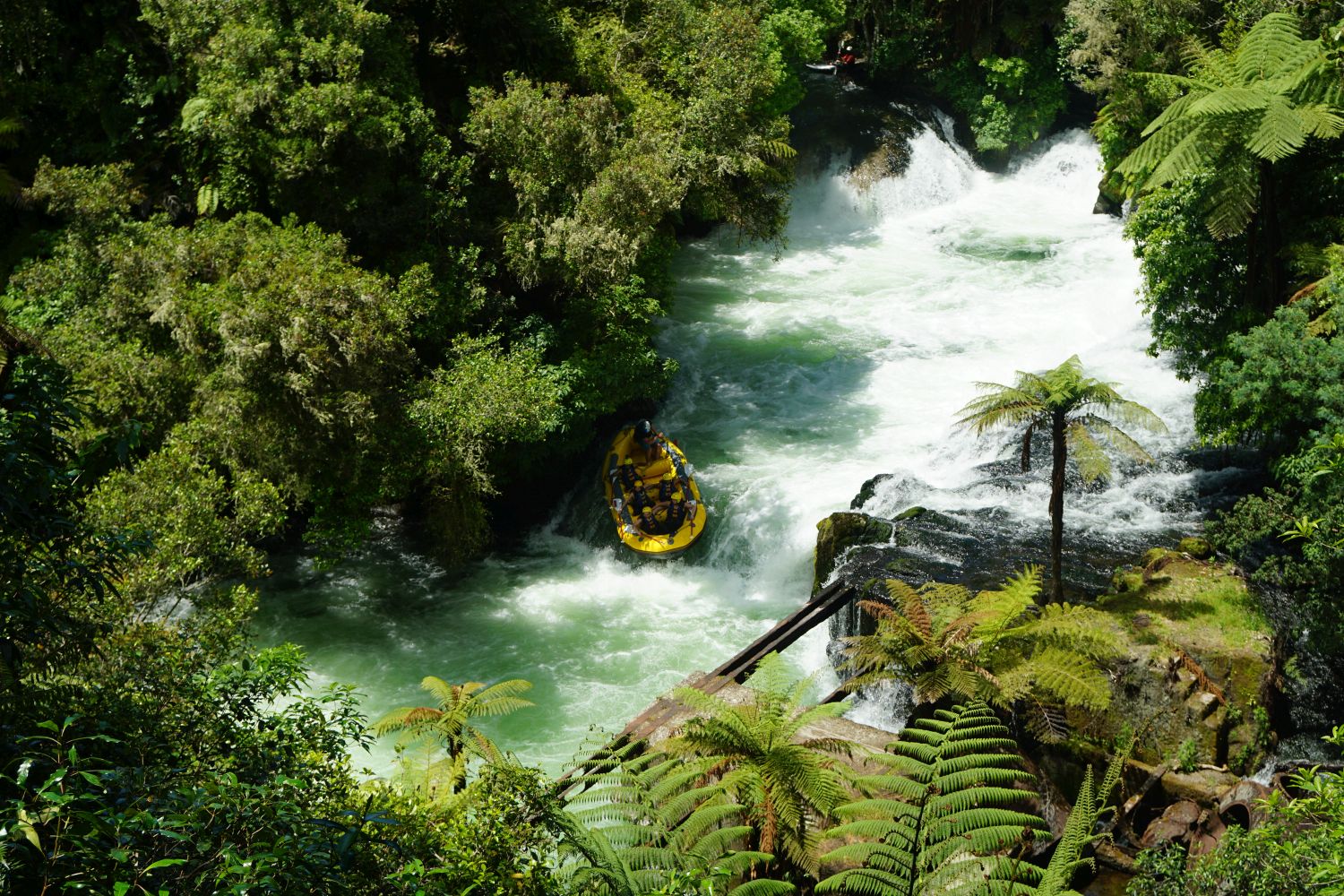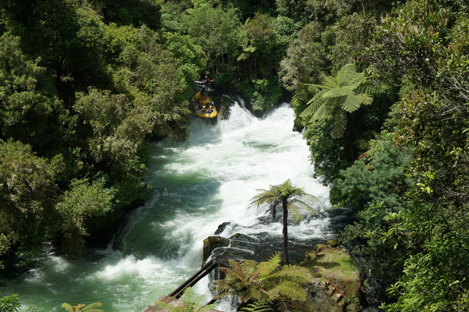 From the Okere Falls lookout near the parking area, the rafts can be clearly seen coming down the falls.