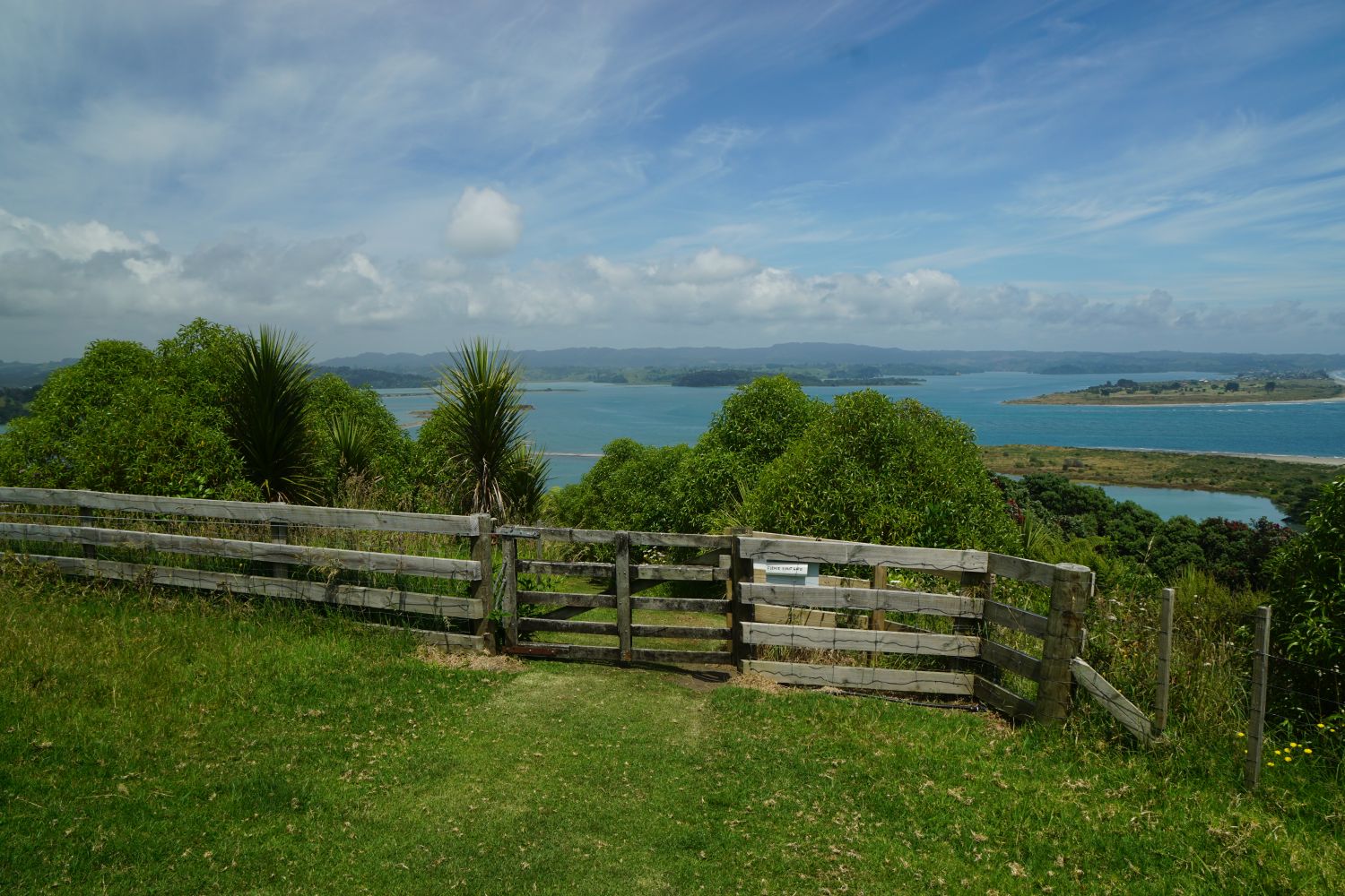 Ohiwa Harbour, seen from Onekawa pa site, with the harbour entrance on the right.