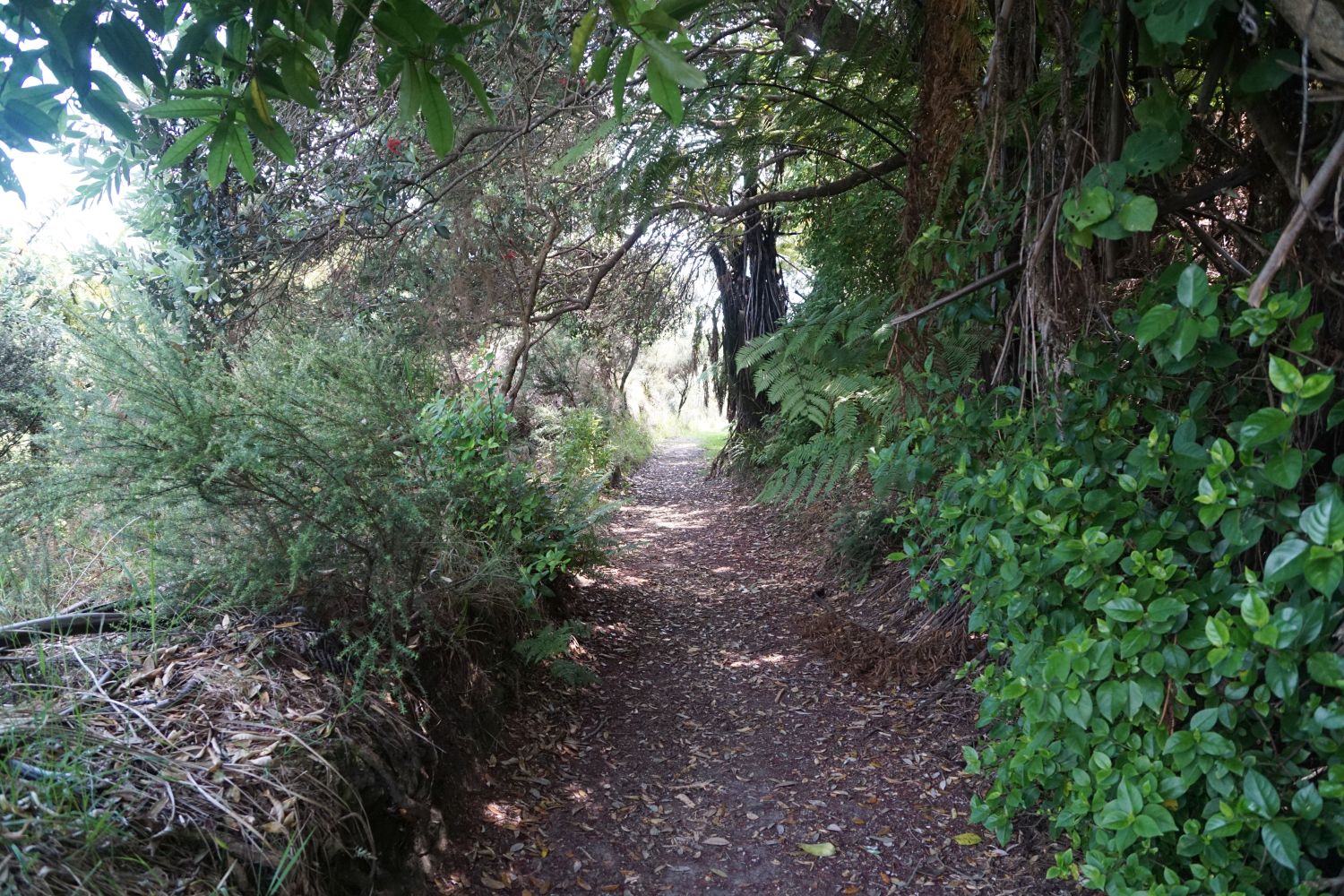 The right hand track continues on a fairly direct route down through native bush.