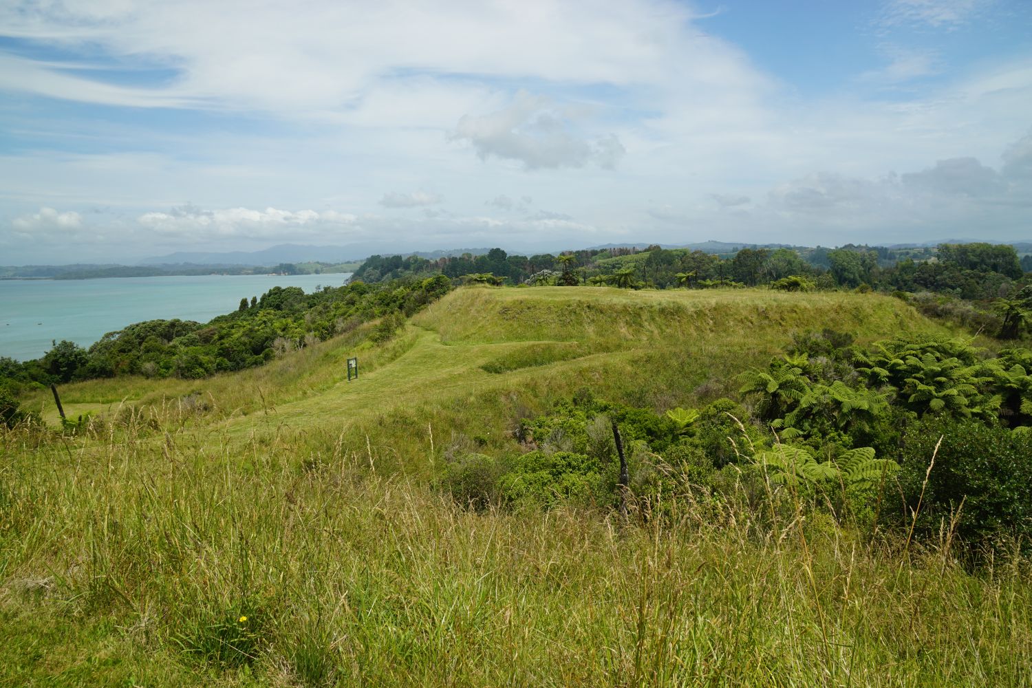 View from the middle pa site towards the northern pa site, with the track from the carpark to the right of the elevated pa.