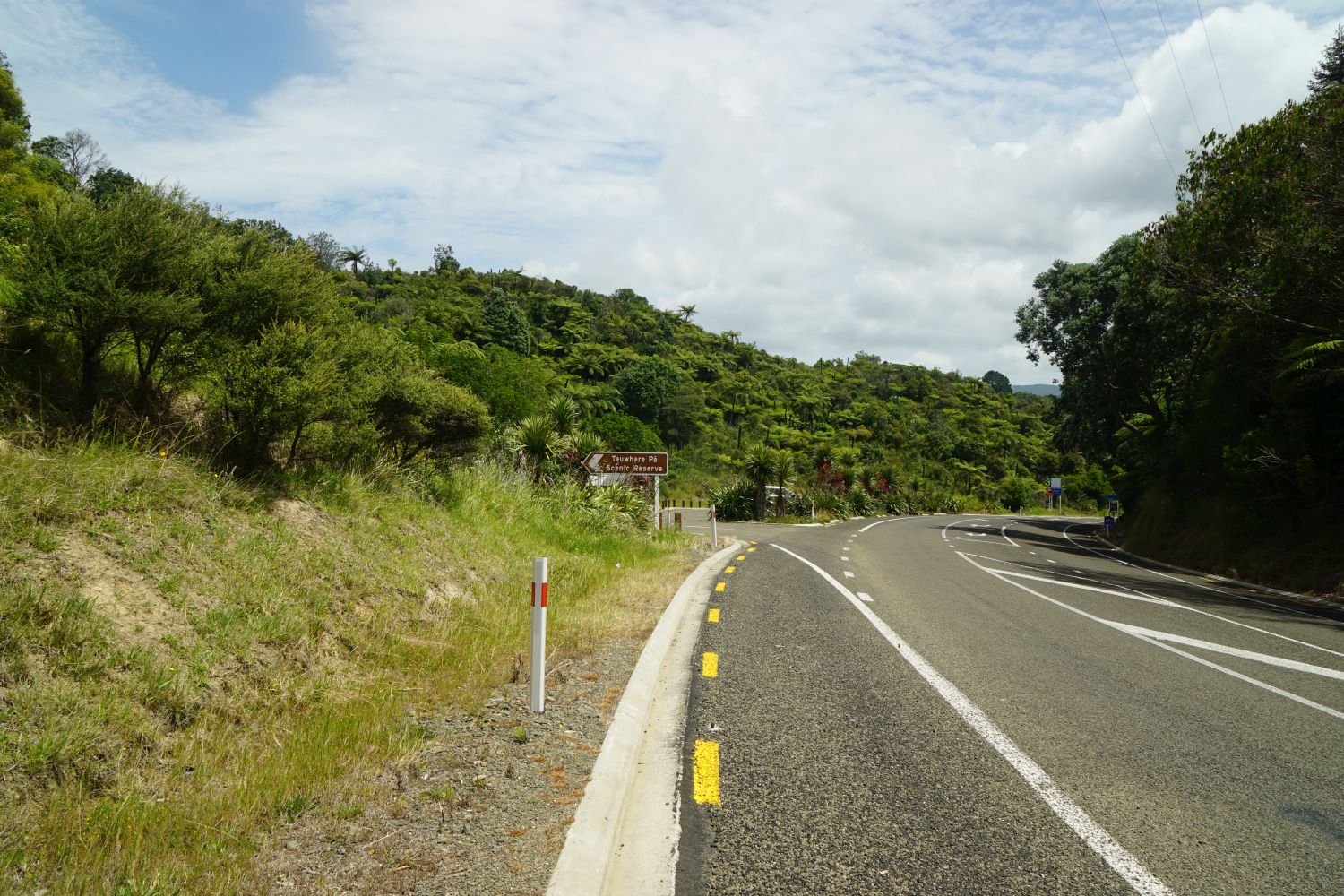 The entrance to the parking area and reserve entrance off Wainui Road, on the outskirts of Ohope.